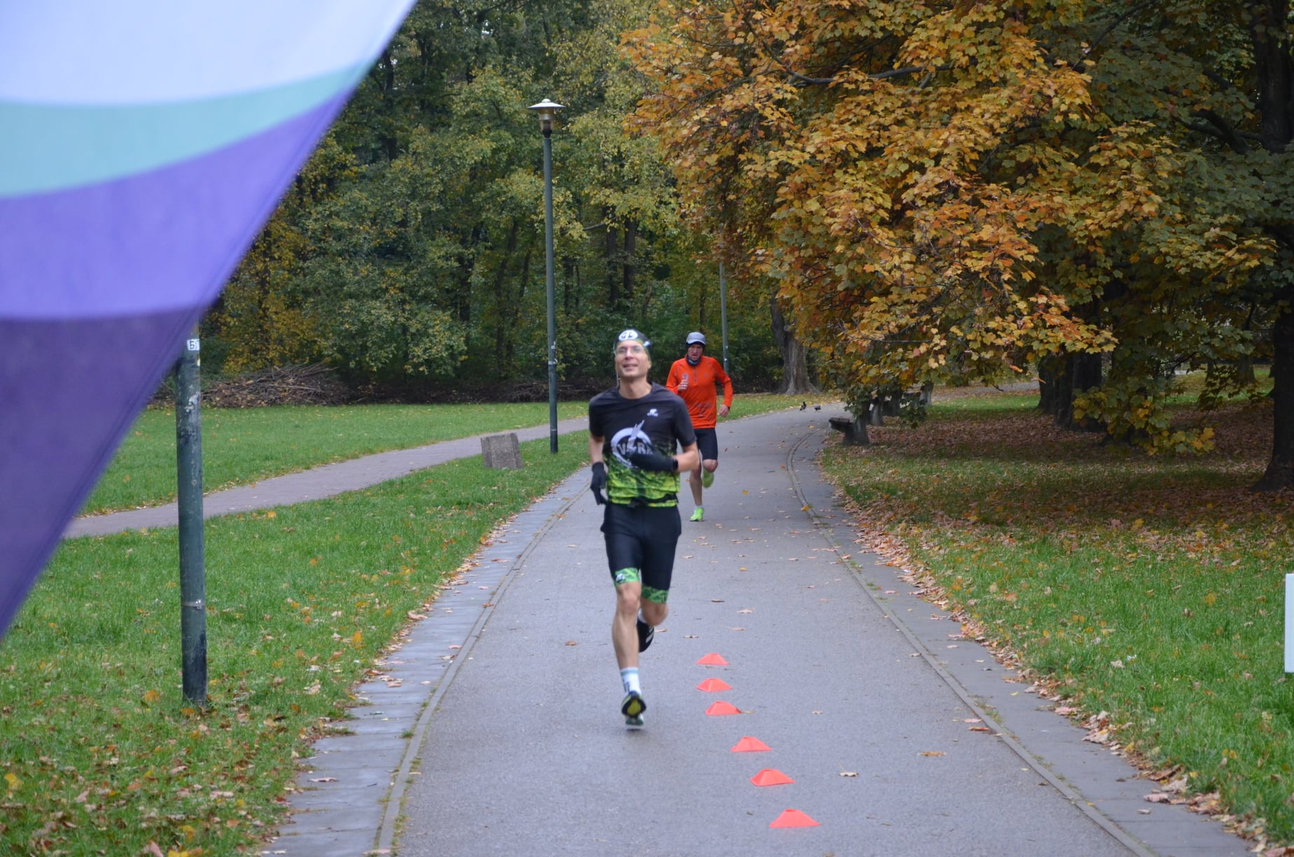 Zakładałem, że tempo 4:00 będzie wystarczające, aby wygrać, natomiast Marek Primik znów klasycznie nie patrzył na nikogo i pobiegł swoje i takim oto sposobem goniłem go przez 4 kilometry. Nie było to ściganie się, ba, nawet nie siedziałem mu na plecach, po prostu biegłem 20-30 metrów za nim, próbując nie zwolnić. Drugie okrążenie Marek jeszcze docisnął i powiększył przewagę. Na plus, pierwszy raz startowałem z muzyką na uszach, więc trochę to pomagało. Drugim aspektem, który trzymał mnie przy życiu, to, że organizm był nauczony od wielu, wielu treningów, że przyspieszamy na końcu i tak zacząłem robić. Na kilometr przed metą wrzuciłem wyższy bieg i włączyłem autopilota, około 600 metrów przed metą dogoniłem Marka i niewiele myśląc, poszedłem dalej. Ostatnie metry już odpuściłem finish, aby sobie nie naszkodzić. Czas 17:45 – okrążenia 7,49/7,36/2,19.