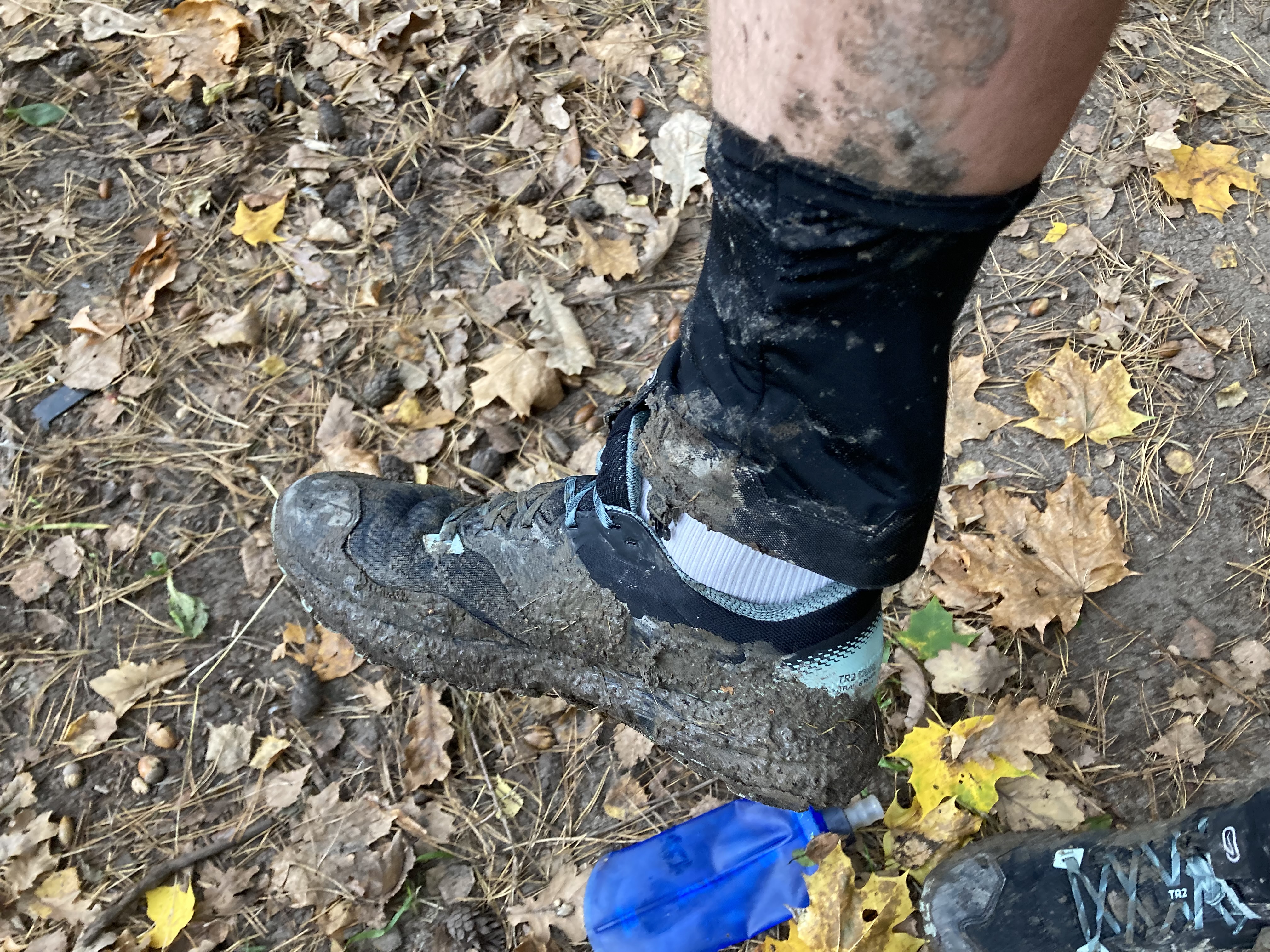 Efekt testu – Zegarek super, pas na numer startowy również nie odczuwałem go (miałem nawet numer startowy do testów :)). Stuptuty mega pozytywna sprawa (zobaczcie zdjęcia), nic nie wpadało do środka, a Maurycy mówi, że też nie pozwalają, aby but został w błocie.