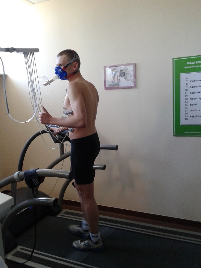 W międzyczasie zostałem poproszony na pomiary antropometryczne i analizę składu ciała – Czyli w skrócie – Waga, wzrost, obwody, tkanka tłuszczowa oraz później miałem przeprowadzone EKG Serca. Następnie miałem krótki wywiad na temat historii sportowej i zostałem poproszony do innego pomieszczenia, gdzie czekał mnie pierwszy poważniejszy test, czyli badanie wydolności tlenowej organizmu (próba wysiłkowa).